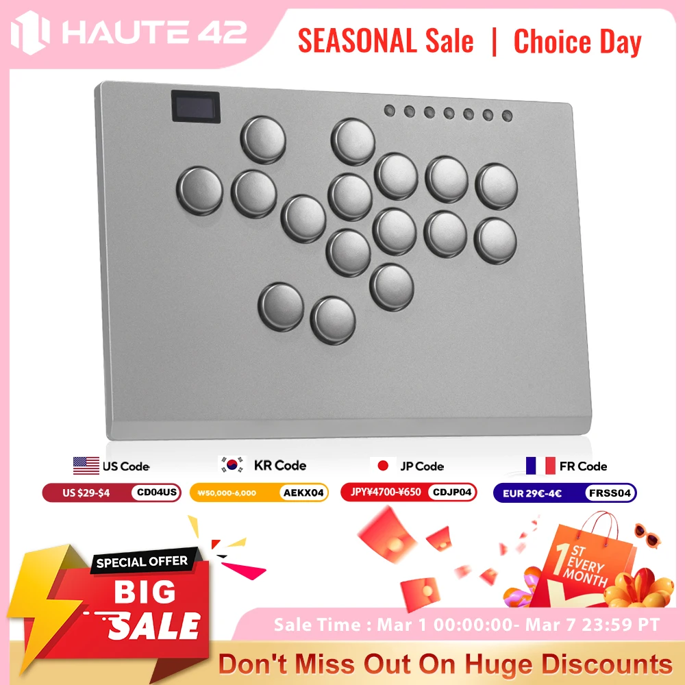 Haute42 Aluminiowy Kontroler Arcade Bez Dźwigni i Drążków z Stopu Aluminium, Bezdrążkowy Joystick Arcade do PC/PS4/PS5, Kontroler Arcade do Gier Walki Hitbox