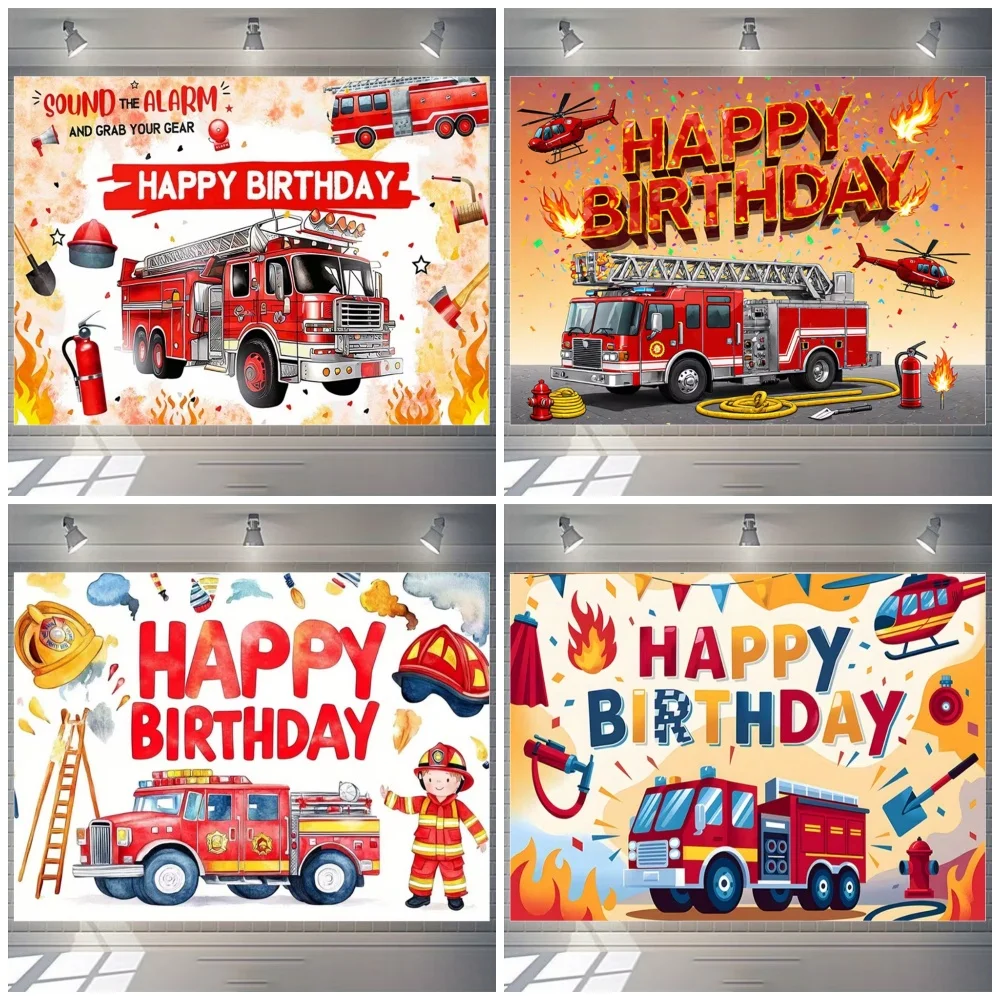 Dekoracje na przyjęcie urodzinowe dla chłopca w stylu kreskówkowym z motywem wózka strażackiego, czerwony wóz strażacki, tło z motywem strażaka, prezent dla dzieci, rekwizyt fotograficzny na baby shower