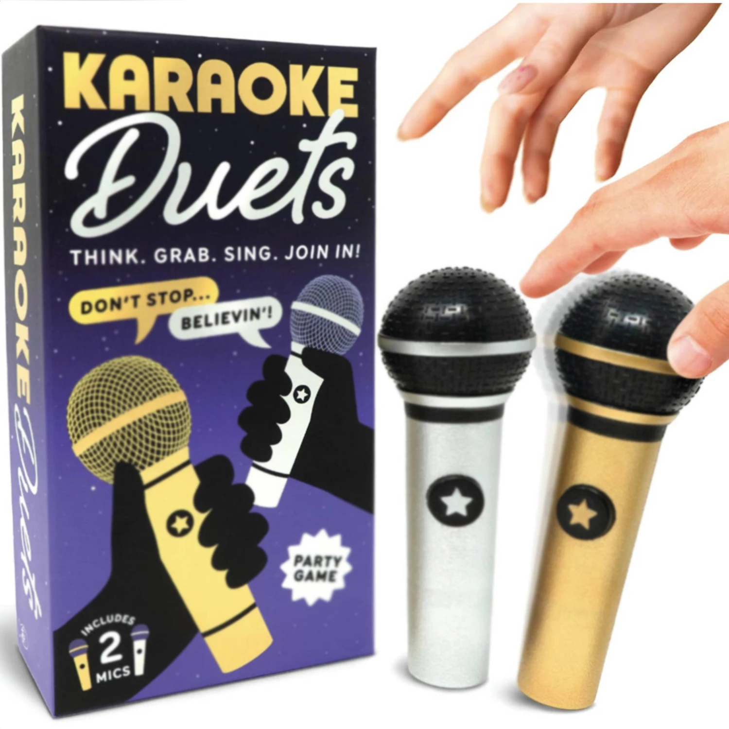 Ekscytująca gra karaoké dla całej rodziny Grab The Mic DUETS, gra planszowa dla 2-10 graczy, dla nieposkromnych piosenkarzy, 150 kart z tekstami, gra dla piosenkarzy dla rodziny.