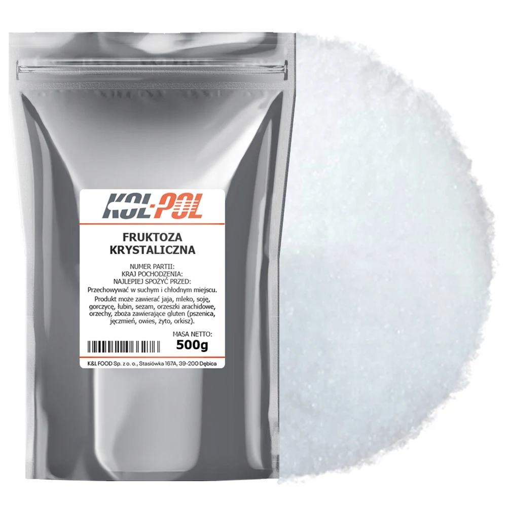 FRUKTOZA KRYSTALICZNA 500g Cukier owocowy naturalny wysoka jakość Kol-Pol