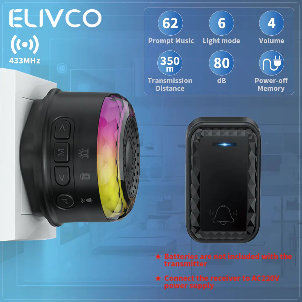 Bezprzewodowy dzwonek do drzwi z 62 melodiami, inteligentny dzwonek domowy, 4 poziomy głośności, inteligentny dzwonek do drzwi, zasięg 350m.