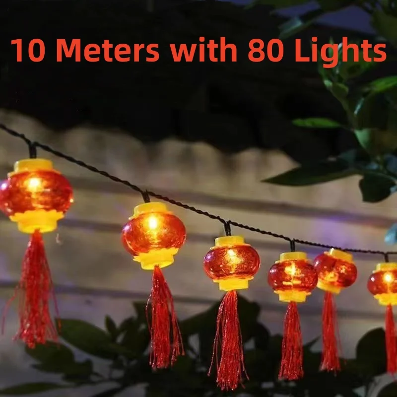 10 Metrów z 80 Lampkami Noworoczne Lampki Sznurowe z Frędzlami Latające Lampki na Święto Wiosny Dekoracyjne Lampki LED na Święta