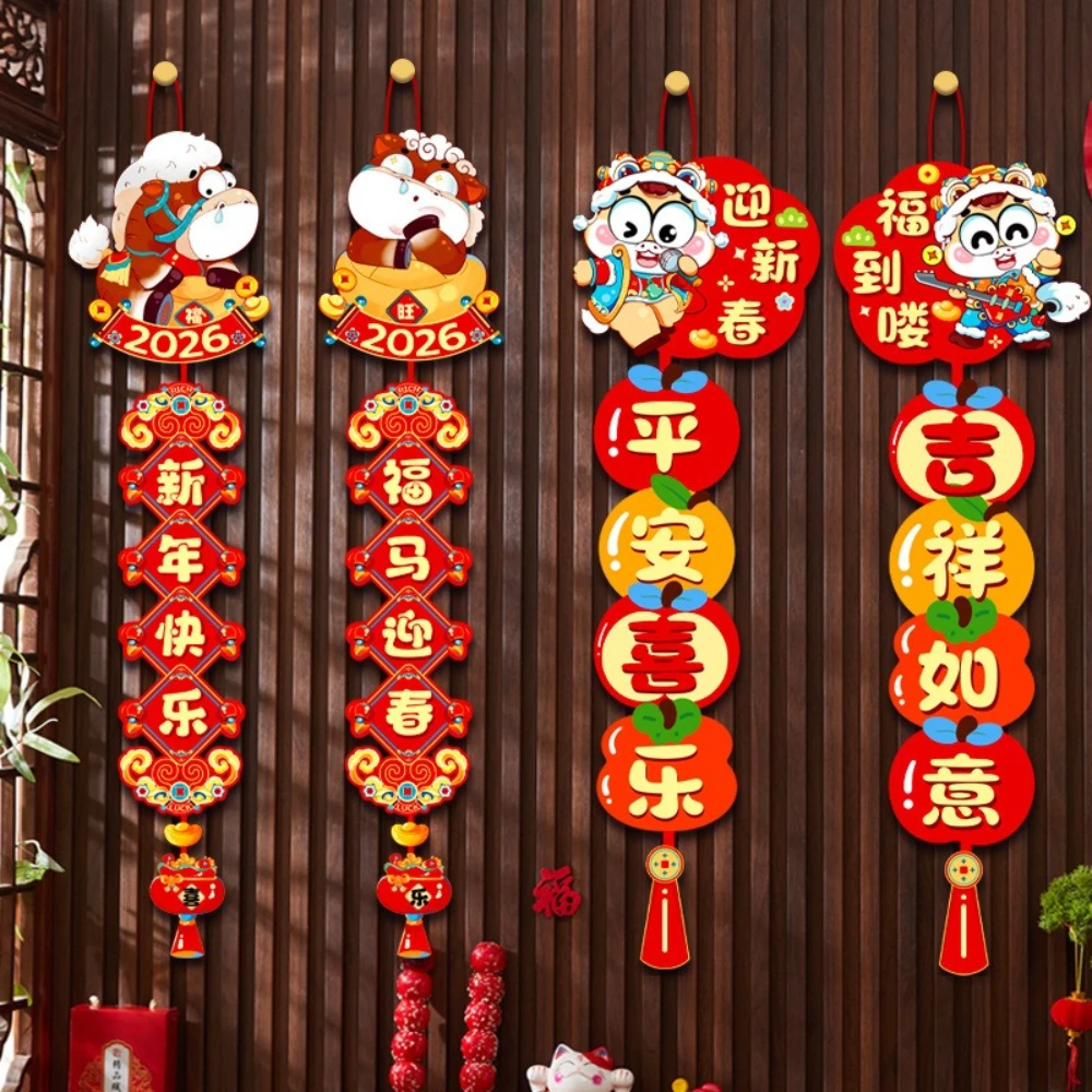 1 zestaw chińskich dekoracji na Nowy Rok 2026, kuplety na dekoracje noworoczne, szczęśliwe wiszące ozdoby, dekoracje na przyjęcie z okazji Święta Wiosny