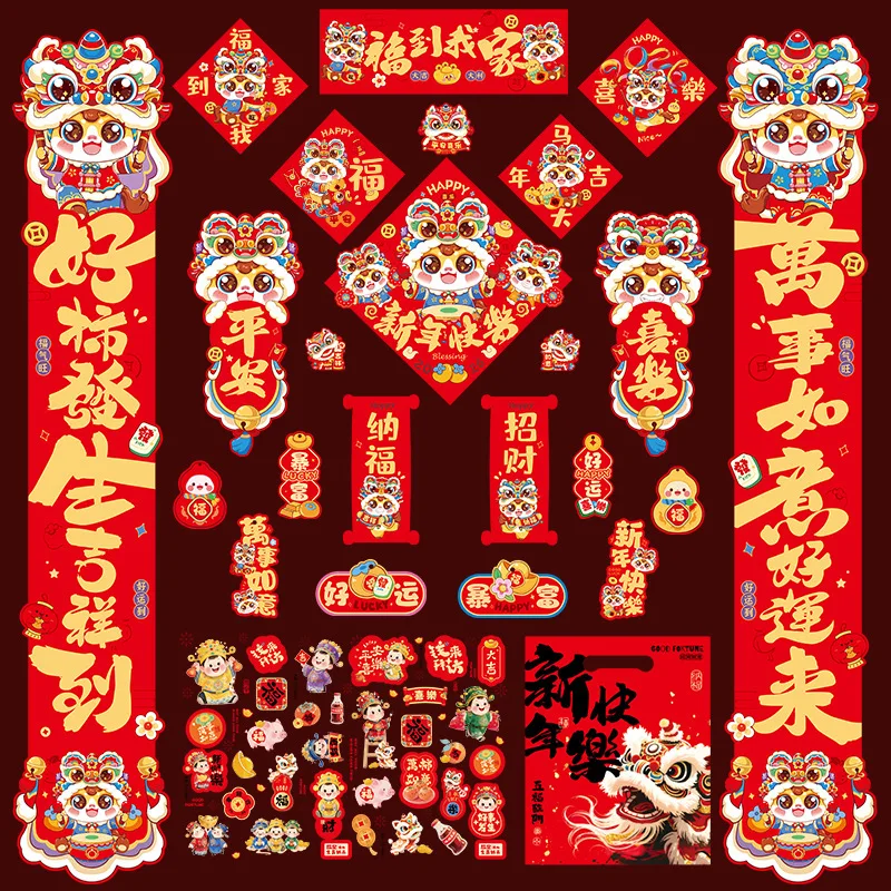 1 Zestaw Chińskich Kupletów na Święto Wiosny, Rok Konia, Dekoracje na Drzwi na Nowy Rok Lunarny, Szczęśliwe Fu, Naklejki na Okna, Znaki na Werandę, Dekoracje Ścienne