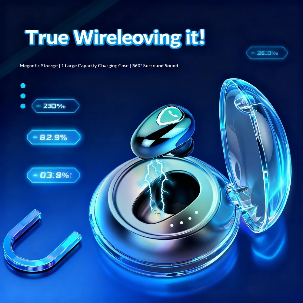 Bezprzewodowe słuchawki o wysokiej estetyce, nowość 2025, niewymagające wyczucia przy noszeniu podczas snu, jakość dźwięku HIFI, redukcja szumów, komfortowe.