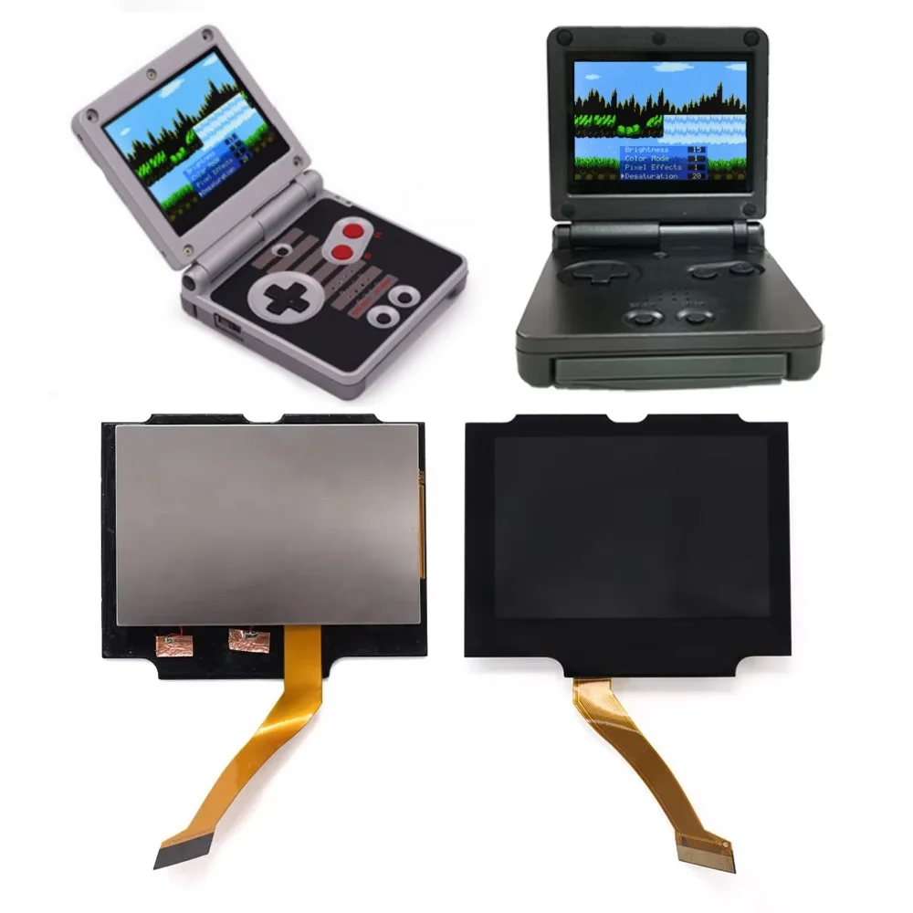 Zestaw ekranu LCD V5 HD GBA SP IPS z laminowaną szybką (drop-in) do Gameboy Advance SP, czarny/czerwony/biały, obudowa z soczewką.