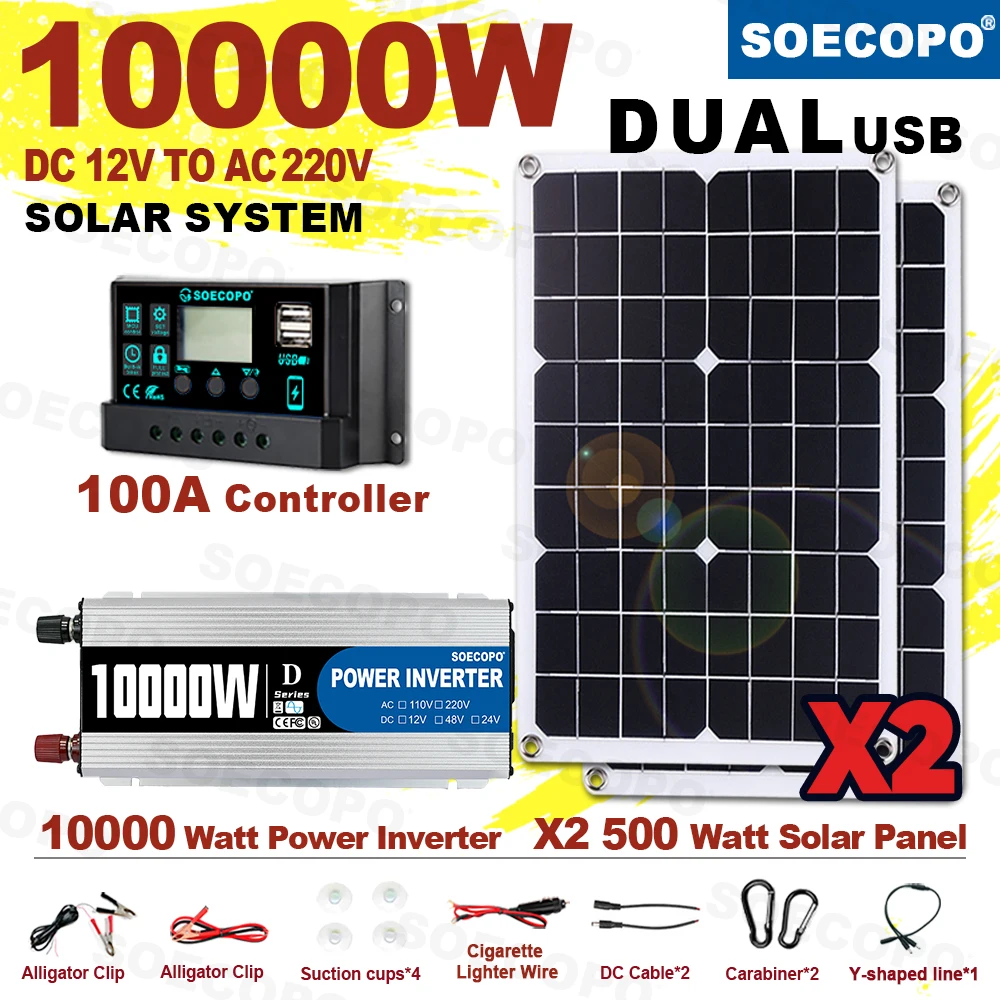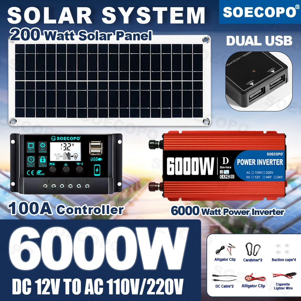 Zestaw paneli słonecznych 6000W, inwerter 12V na 110V/220V, kontroler 100A, kompletny system solarny do kempingu, kampera, na zewnątrz, zasilanie awaryjne.
