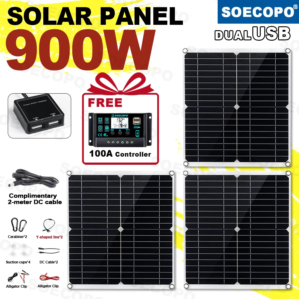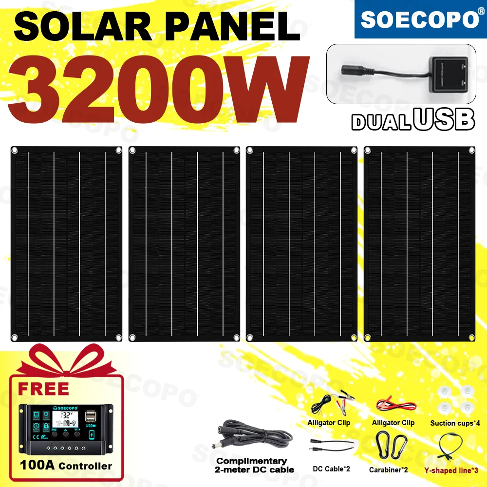 Zestaw paneli słonecznych o mocy 1000 W z inteligentnym kontrolerem 100 A Przenośny mono do domowego kampera Kemping Zawiera haki, kable i zaciski krokodylkowe