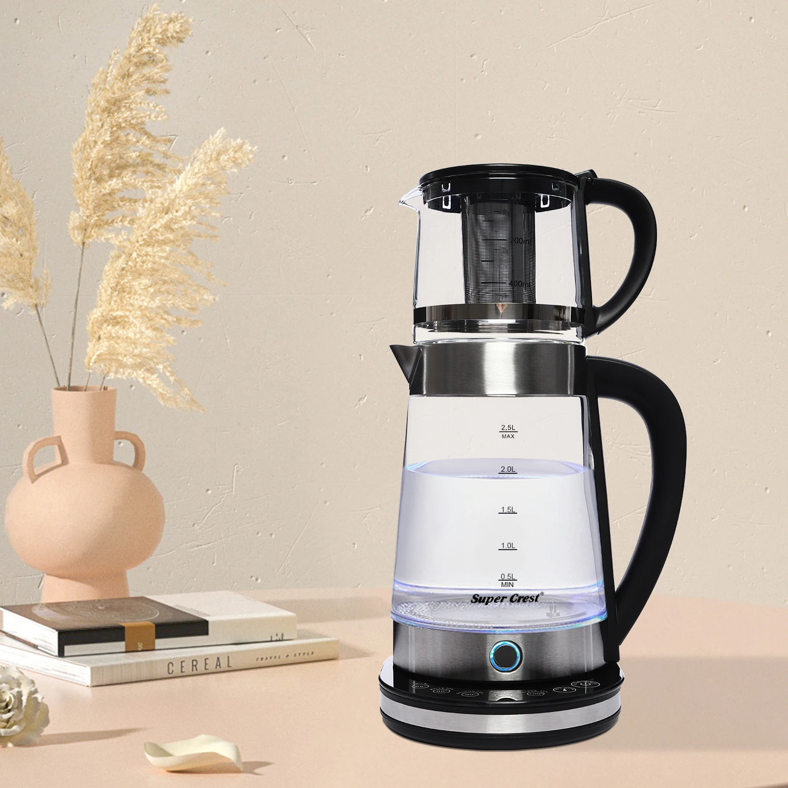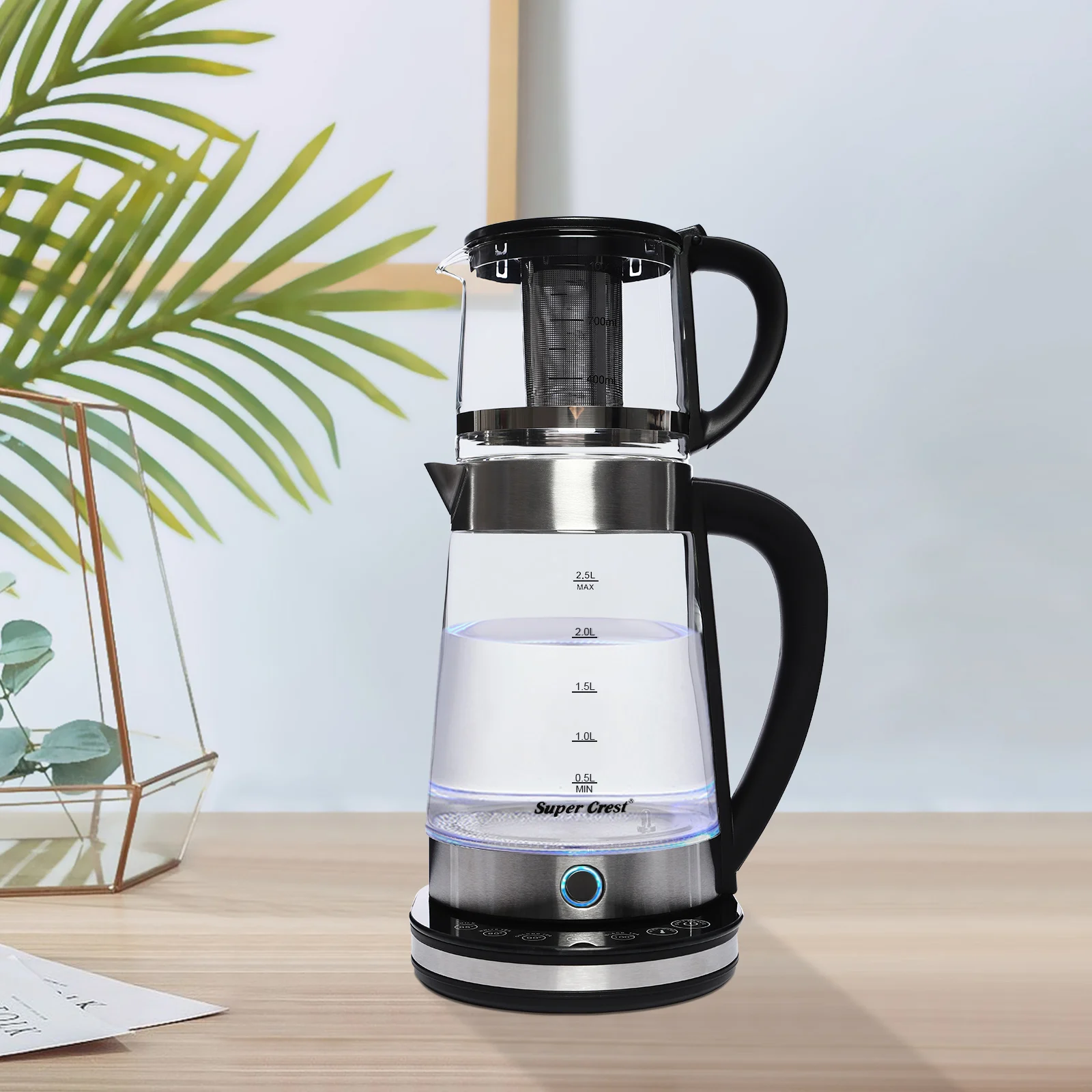 Conjunto de Chaleiras Elétricas de Vidro Grandes e Pequenas com Indicador LED, Conjunto de Chaleiras para Ferver Água para Escritórios, Hotéis e Apartamentos