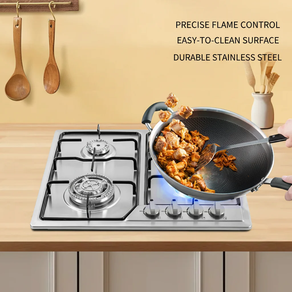 Fogão a Gás Embutido de 4 Queimadores 58x50cm em Aço Inoxidável com Proteção Contra Falha de Chama e Ignição Elétrica