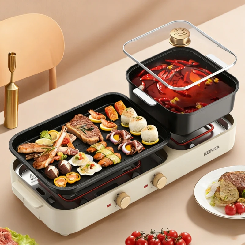 Jardim 4 queimadores de gás churrasqueira grelhadores lpg plancha 10kw carne porco frango cozinhar casa placa quente antiaderente ferramentas churrasco grills