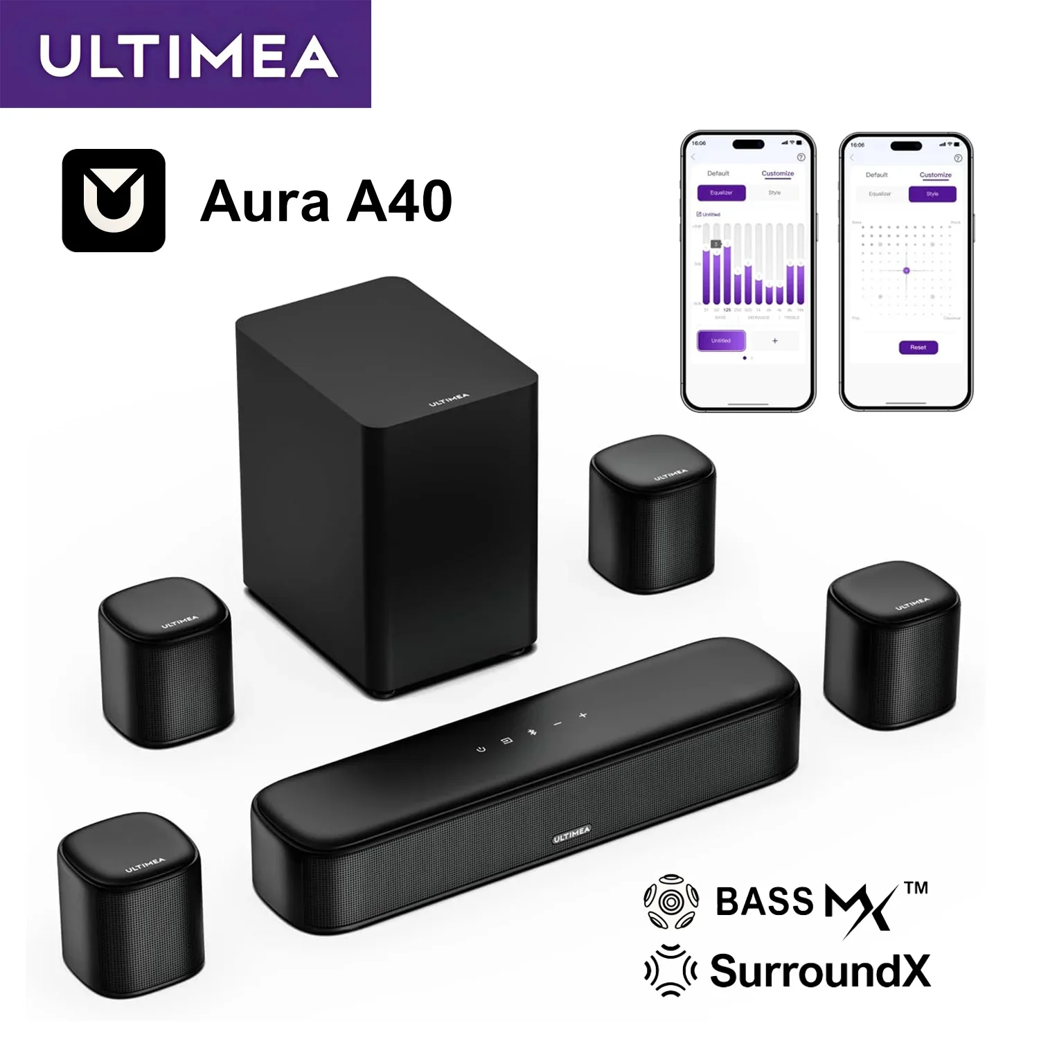 ULTIMEA SoundBar 7.1 Ch para TV com 4 Alto-falantes Surround, Sistema de Áudio para Home Theater com Controle por Aplicativo, Surround Virtual Imersivo