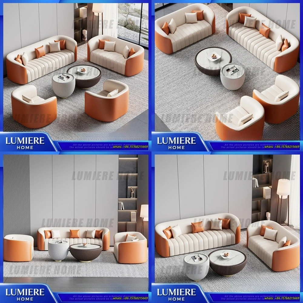 Sofá de Escritório, Conjunto de Sofás para Recepção de Hotel, Móveis de Escritório, Sofás Seccionais Modernos, Sofá de Couro Luxuoso Personalizado Profissional