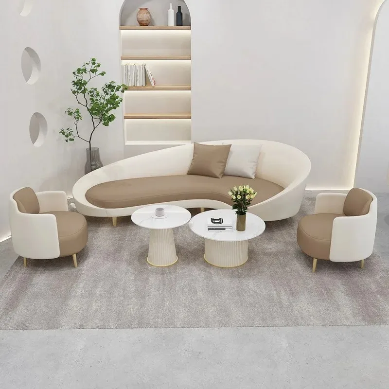 Sofá de escritório, chefe de negócios moderno, reunião e discutora de couro, conjunto de sofá de mesa de centro simples e sofisticado para três pessoas