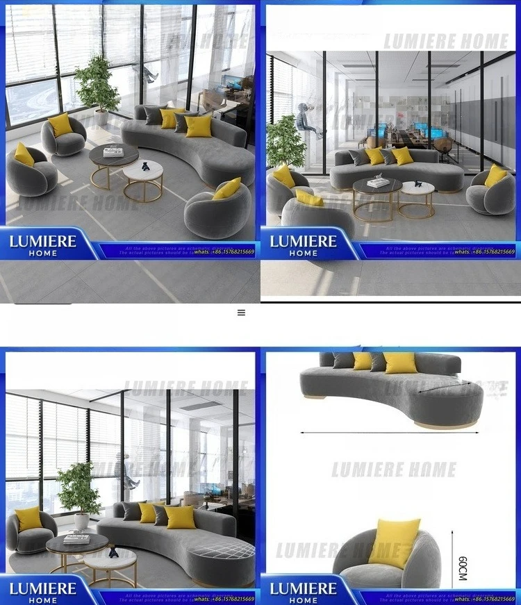Sofá secional de design moderno, sofá curvo confortável, grande conjunto de sofá de escritório, móveis para espaço aberto, área de recepção, academia