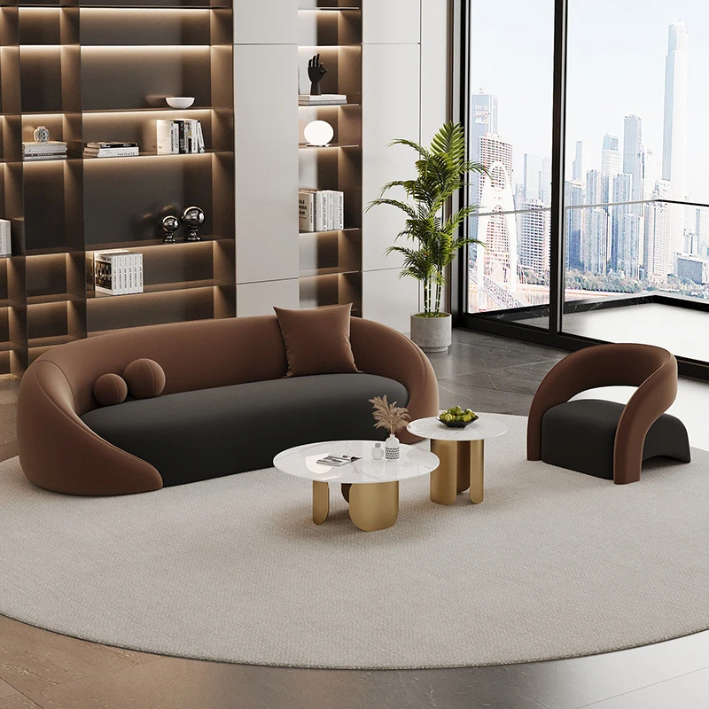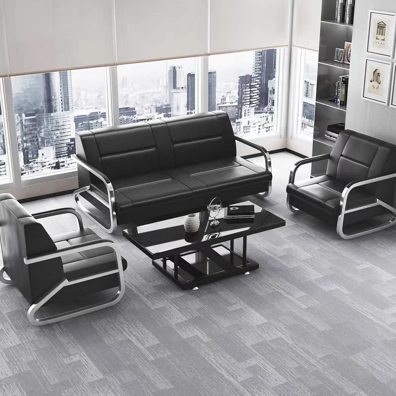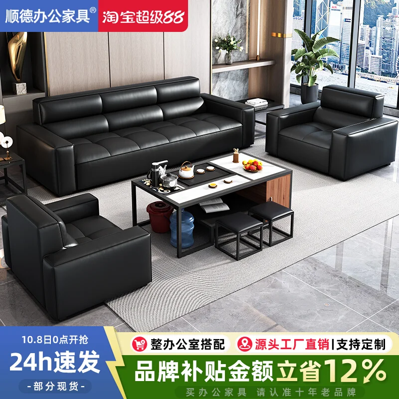 Sofá de escritório, chefe de negócios moderno, reunião e discutora de couro, conjunto de sofá de mesa de centro simples e sofisticado para três pessoas