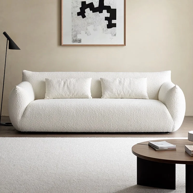 Sofá Moderno MoonTop Branco Boucle de 3 Lugares, Estofado em Pelúcia com Almofadas para Sala de Estar Contemporânea