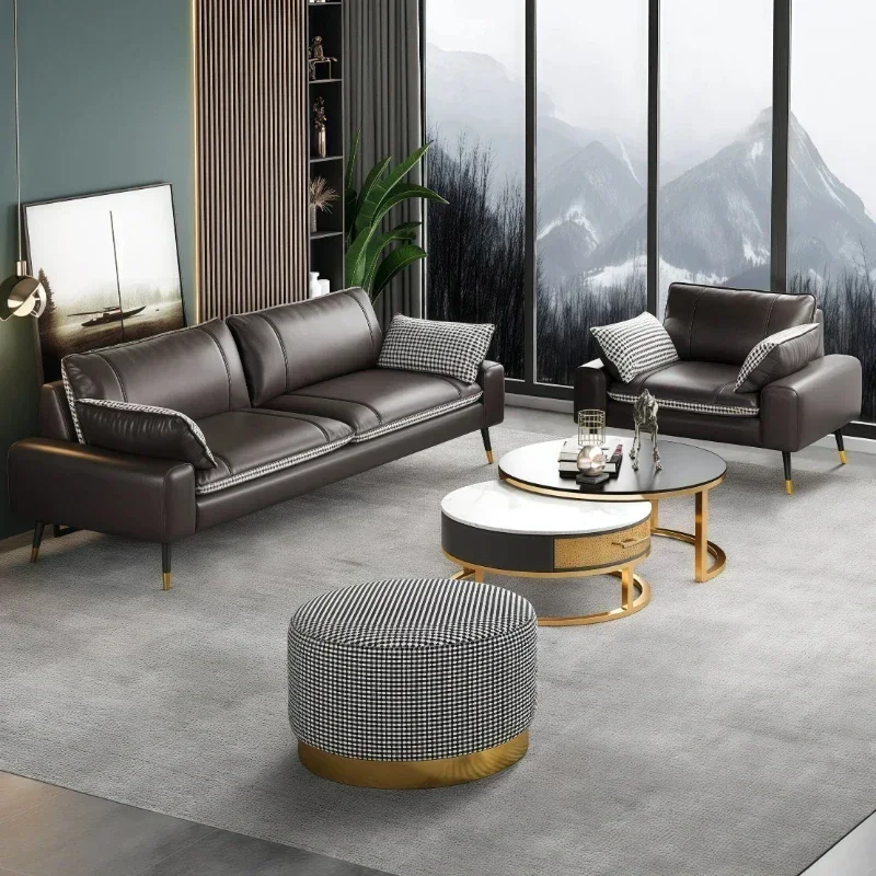 Conjuntos de sofás de design moderno e luxuoso, sofá de couro, móveis para casa, sofá modular de 1 a 4 lugares para casa, hotel e recepção.