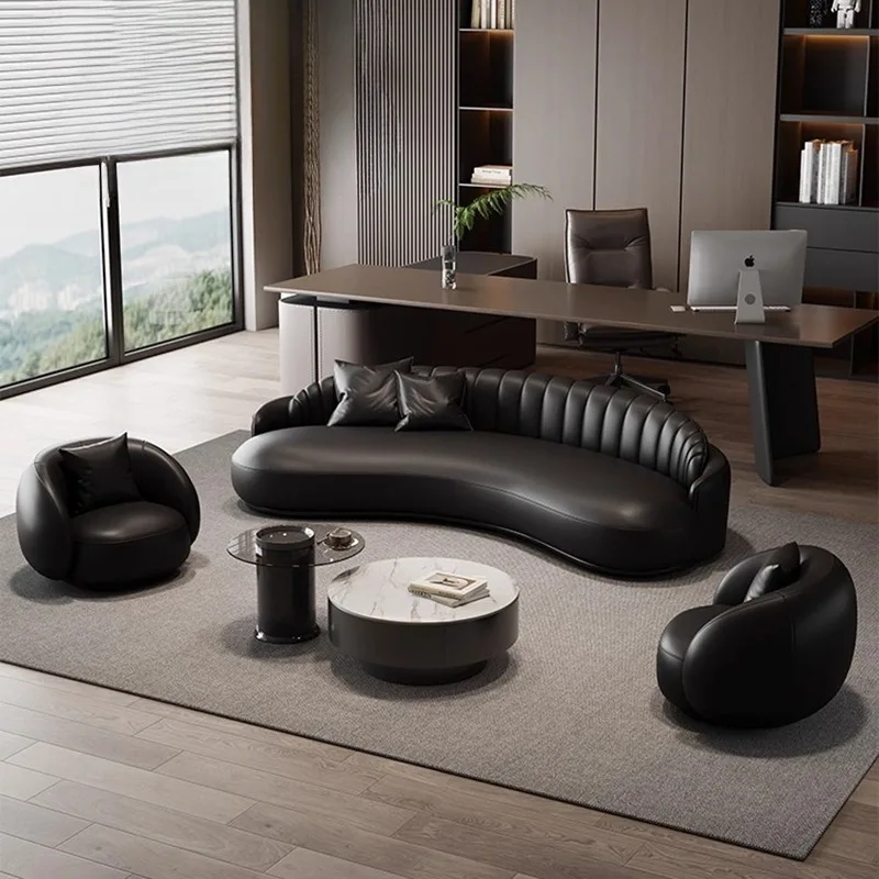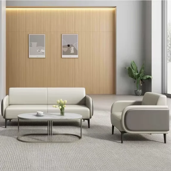 Conjunto de sofá de escritório de couro simples de luxo Prima para recepção de negócios