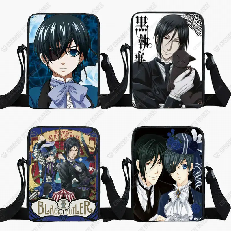 Anime japonês preto mordomo mensageiro bolsa feminina bolsas adolescente ciel/sebastian meninas cruz saco de lazer sacos de ombro bookbag