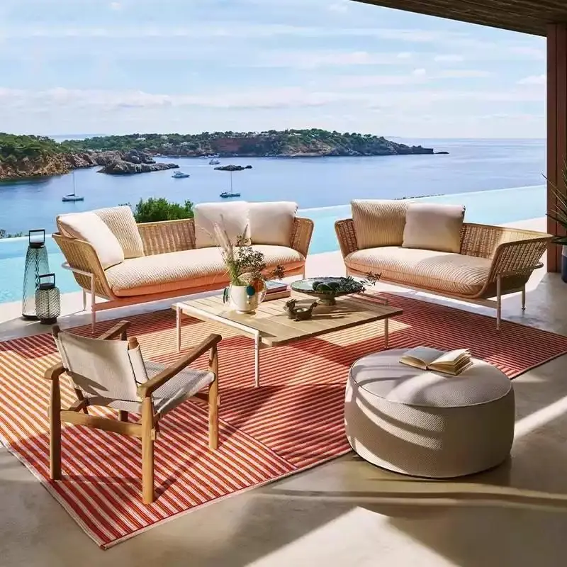 Nordic ao ar livre sofá de vime jardim sala estar piscina varanda tecelagem cadeira de vime sala de sol pátio sofá de vime combinat