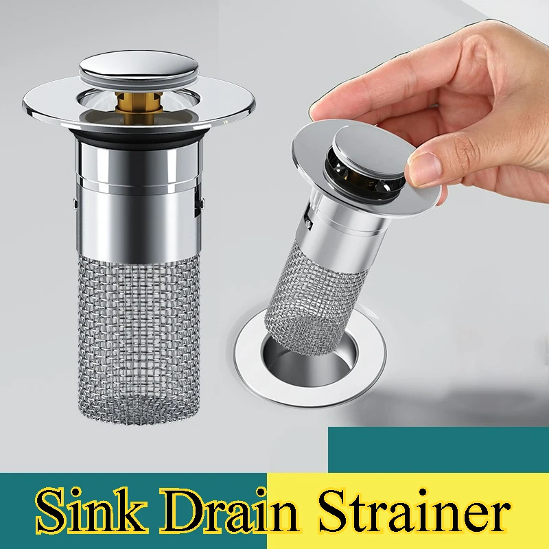 Filtro de drenagem de pia do banheiro universal pop-up pia coletor de cabelo anti-entup cesta de filtro de drenagem de aço inoxidável para lavatório