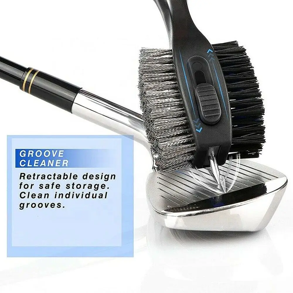 Ferramenta de limpeza de golfe de 2 lados, durável, acessórios de golfe, limpador de ranhuras retrátil, ferramenta apontador, escova de taco de golfe