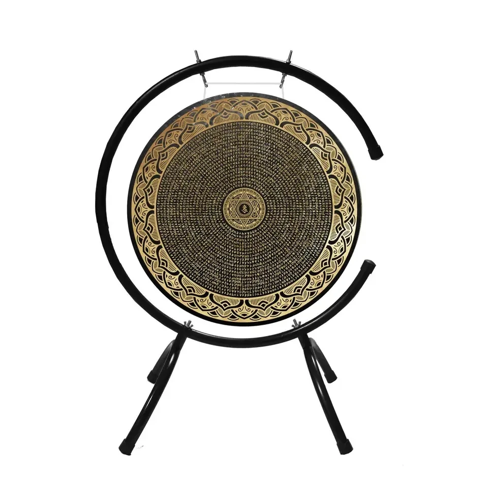 Conjunto de chaminés Sound Healing Wind, C-Stand com batedor, Bronze tradicional chinês, meditação ao ar livre e em casa, 35cm-65cm