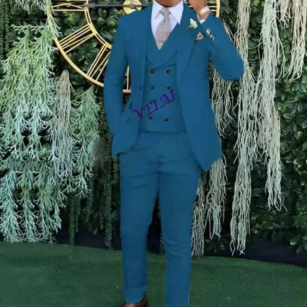 Ternos masculinos personalizados, casaco com lapela repicada, três peças (blazer + calça + colete), feito sob encomenda, slim fit, ternos masculinos, roupa de noivo, casamento