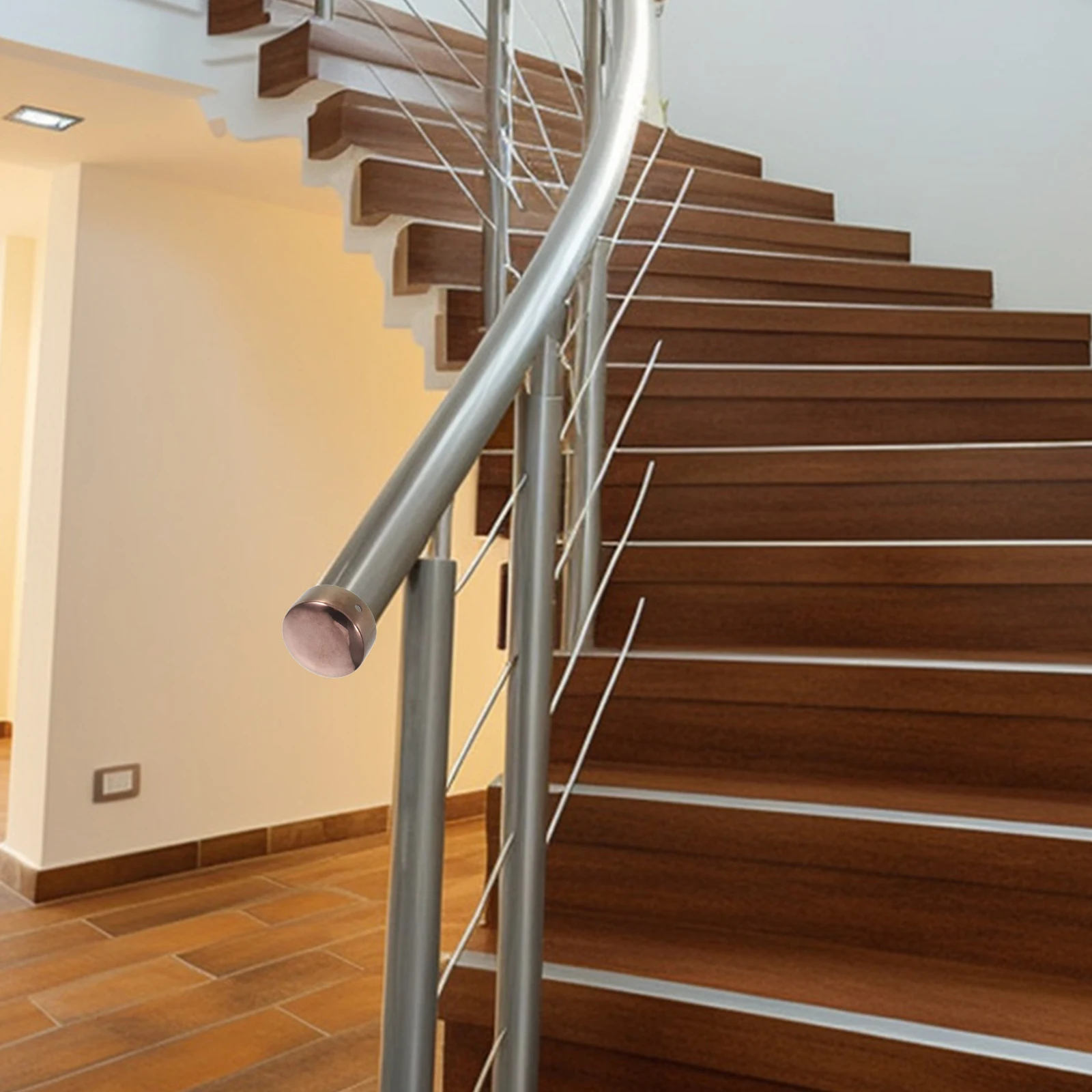 2 pçs tampas de extremidade do corrimão inoxidável tampas protetoras para trilhos de madeira redondos tubo de metal plugues ao ar livre corrimão acessórios