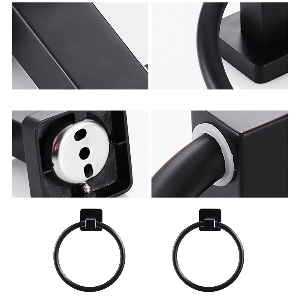 Suporte de Toalhas de Alumínio Preto, Montagem na Parede Sem Perfuração, Design Simples para Banheiro, Escola, Banheiro Público e Uso Doméstico