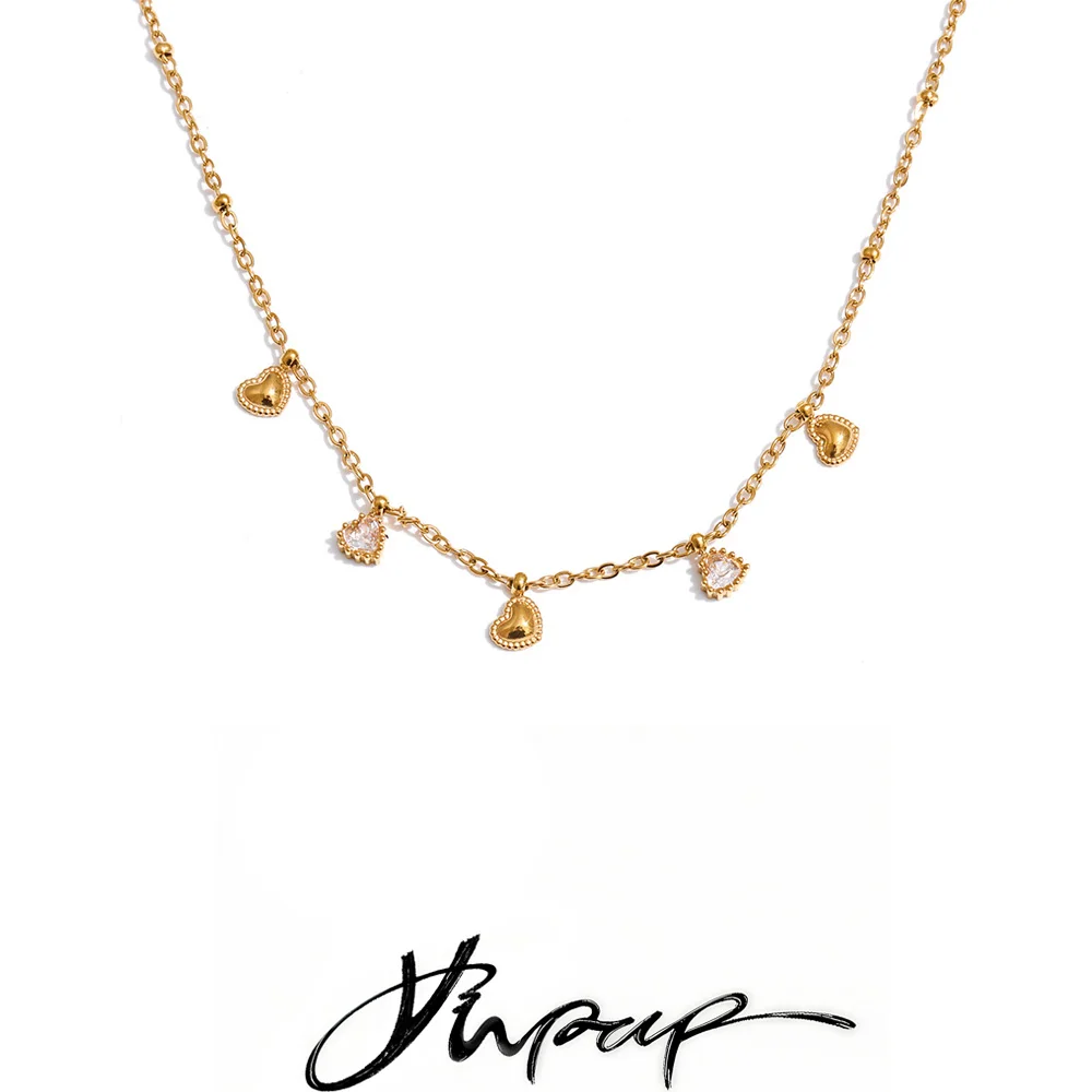 Yhpup delicado colar de gota de coração pequeno de zircônia de aço inoxidável para mulheres 18K banhado a PVD joias de baile presentes para o ano novo
