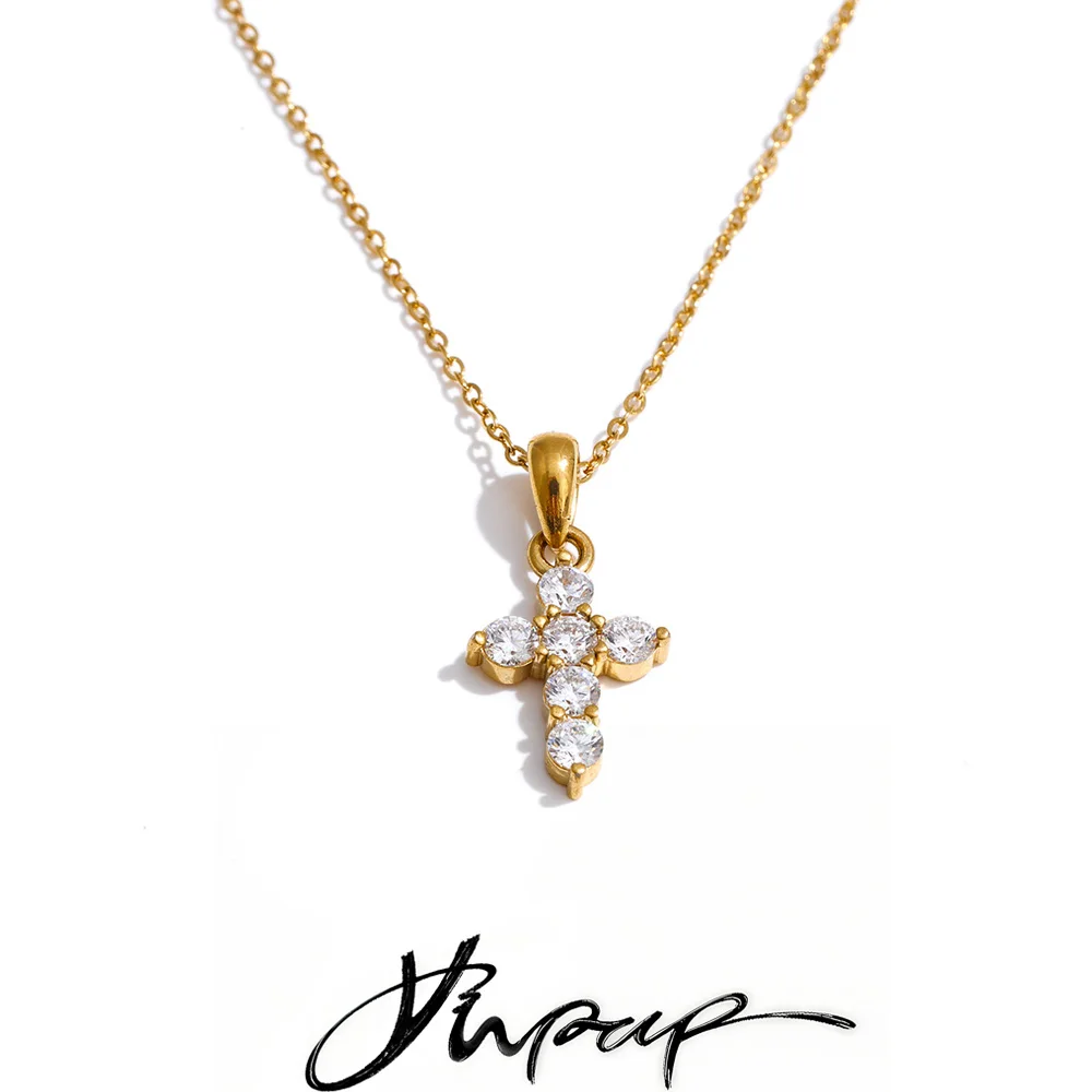Yhpup alta qualidade brilhante cnc zircônia cúbica cruz pingente colar presente ouro & platina banhado delicado moda colar jóias
