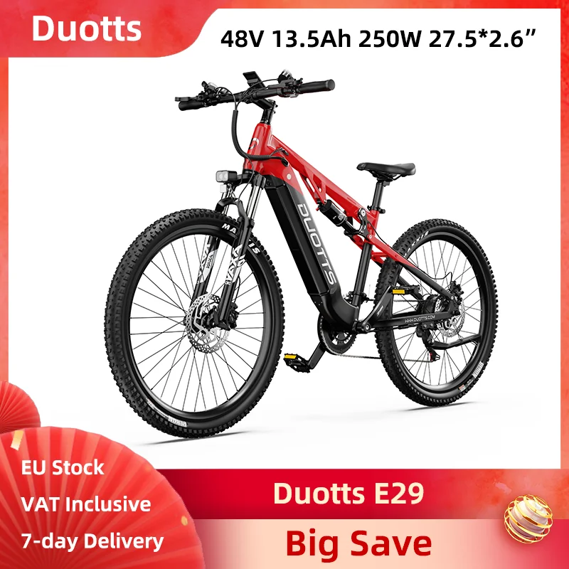 Duotts e29 bicicleta elétrica 250w 48v 13.5ah 27.5*2.6 Polegada pneus e-bike dianteiro traseiro freios a disco hidráulicos suspensão garfo dianteiro 30 °