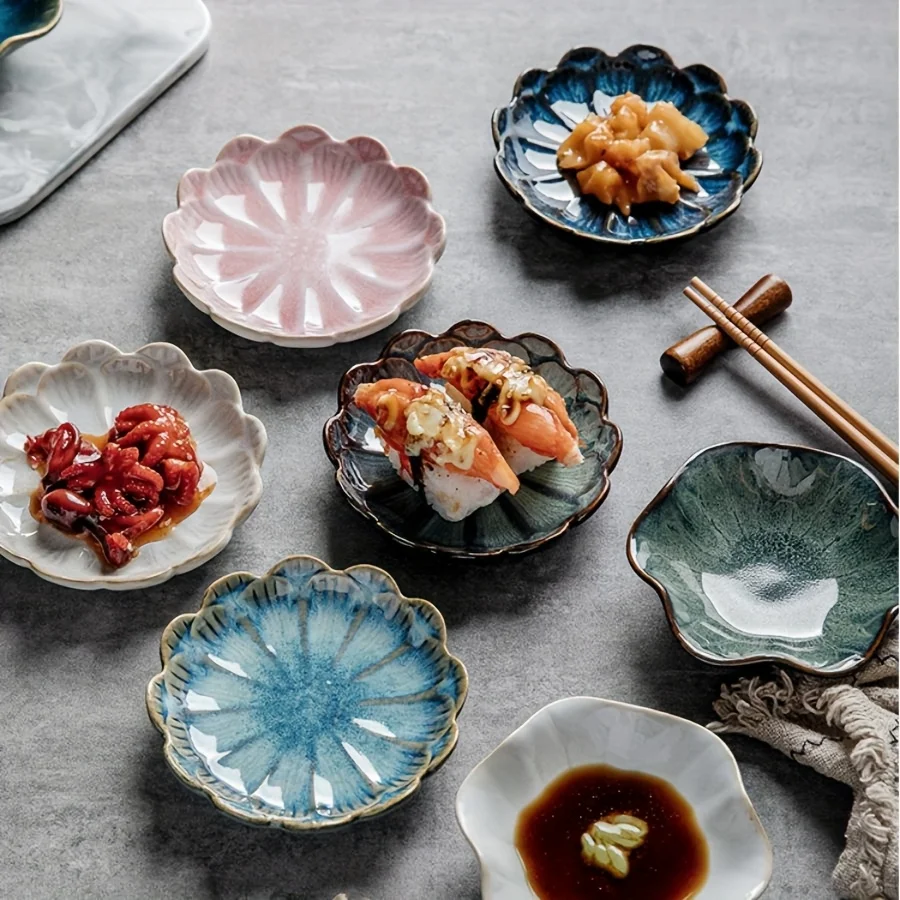 4 placas cerâmicas florais dos pces, pratos transformados do forno japonês para aperitivos/salotes/dabbaies/apetiz, apropriados para a cozinha caseira/presentes