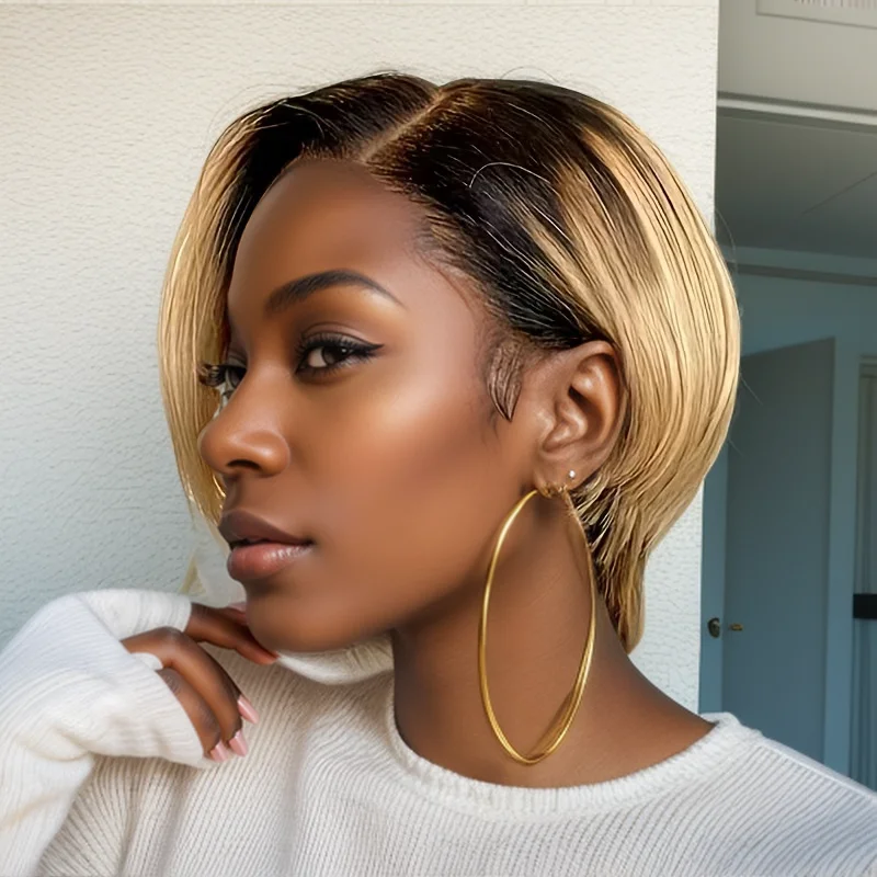 Elegante marrom avermelhado 4 colorido em camadas retas corte 13x4 frente do laço perucas de cabelo humano para mulheres curto bob perucas de cabelo brasileiro