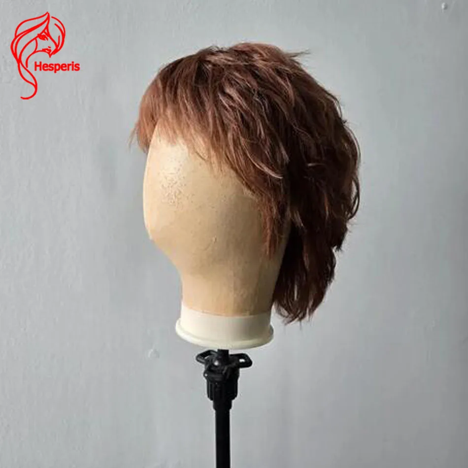 Hesperis 13x6 frente do laço vermelho peruca teatral dos homens curto natural ondulado peruca do laço para masculino cabelo humano fred peruca com franja