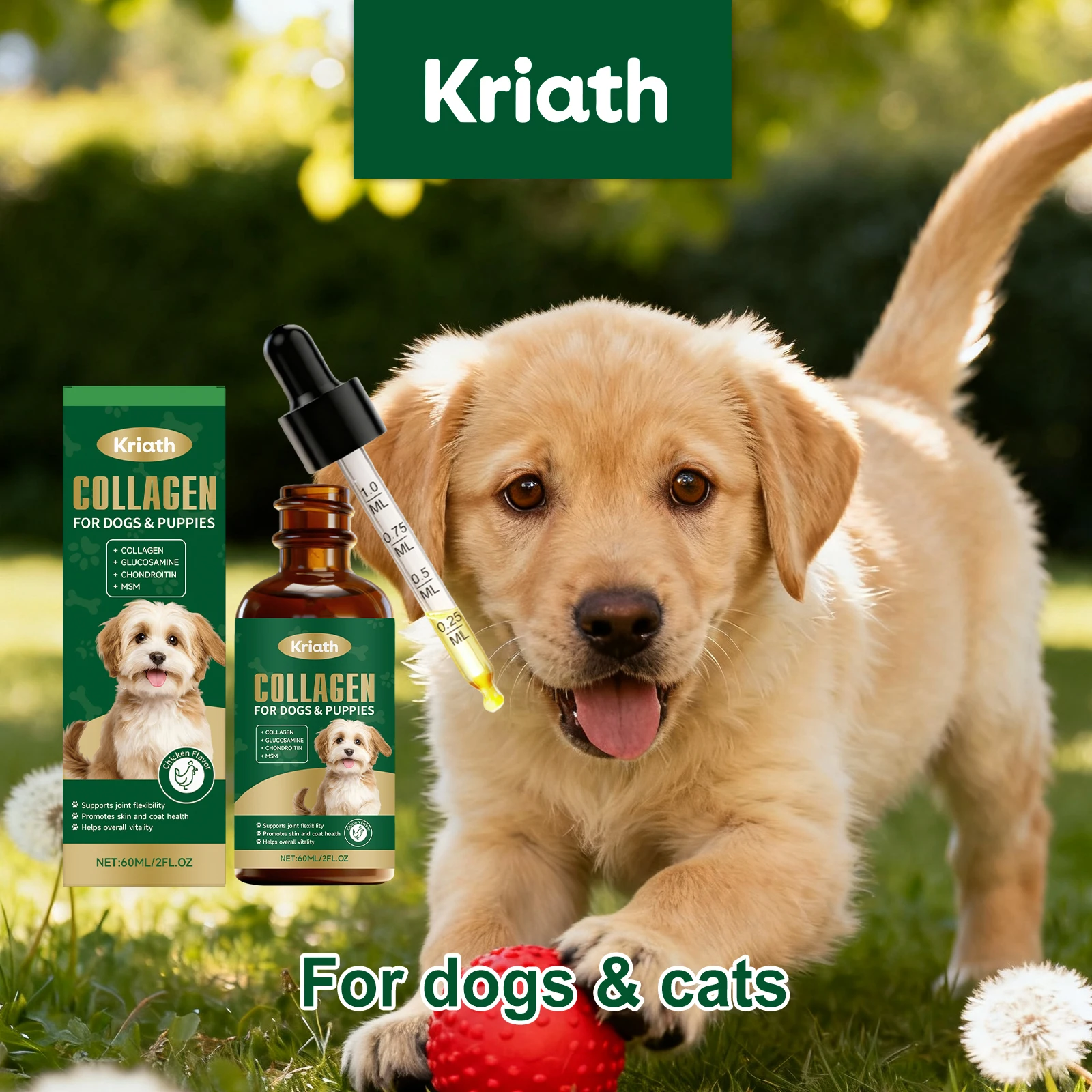 Gotas de colágeno nutricionais para cães - Cuidados suaves para o corpo Fácil absorção Suporte Flexibilidade das articulações Casaco de pele Saúde Bem-estar geral