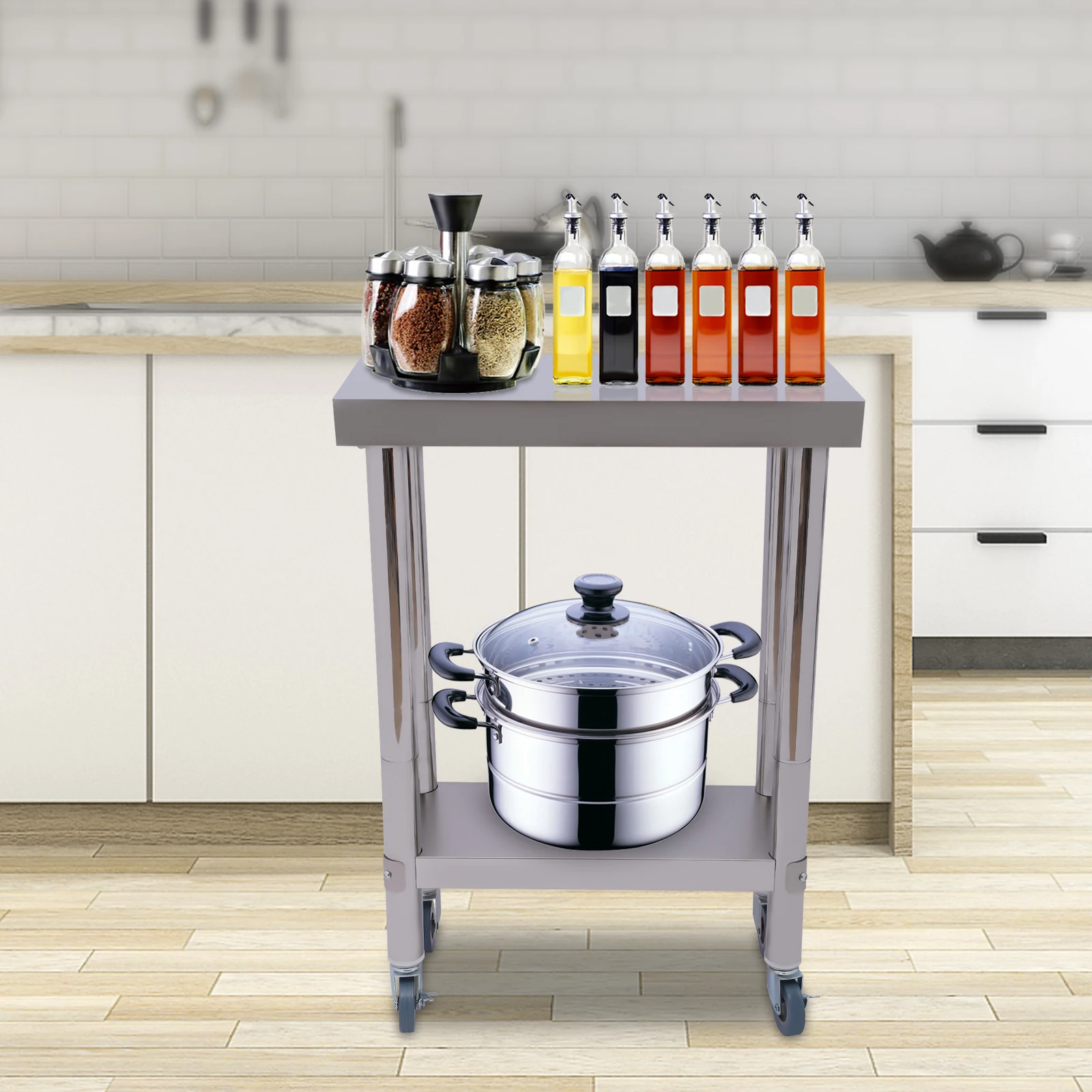 Mesa de aço inoxidável para preparação e trabalho 24 x 18 polegadas, mesa de trabalho comercial resistente para preparação de alimentos com undershelf para restaurante