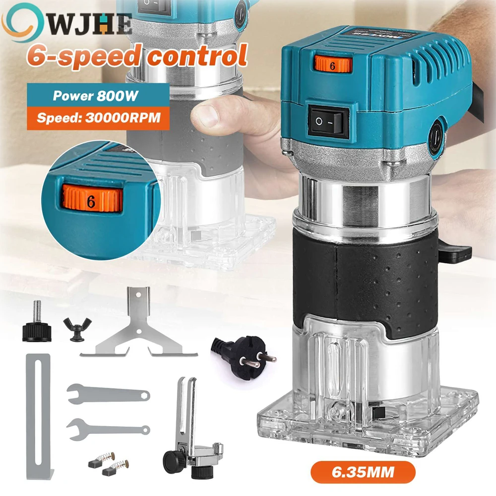 Máquina de corte elétrica, 6 velocidades, 800w, 33000rpm, carpintaria, fresagem, gravura, mão, borda de madeira, aparador, casa, ferramentas elétricas diy