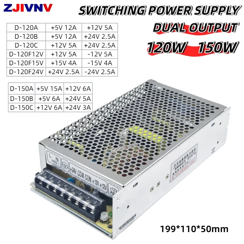 Fonte de alimentação de comutação de saída dupla 120W 150W para conversão AC para DC 5V 12V 24V para projetos eletrônicos D-120 D-150