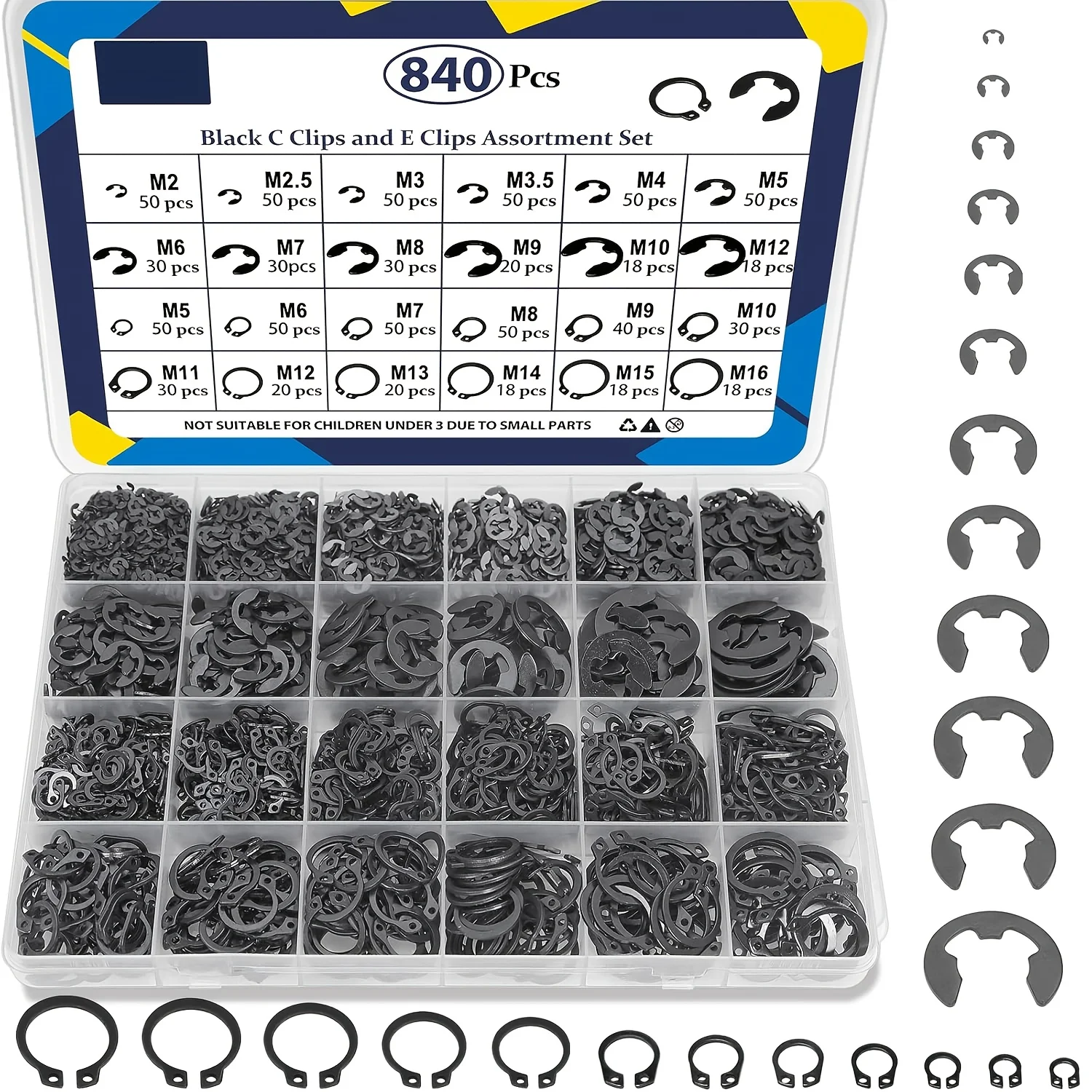 120 pçs conjunto M1.5-M10 preto e clipe snap anel de retenção interno de aço inoxidável kit variedade arruela para fixador de eixo