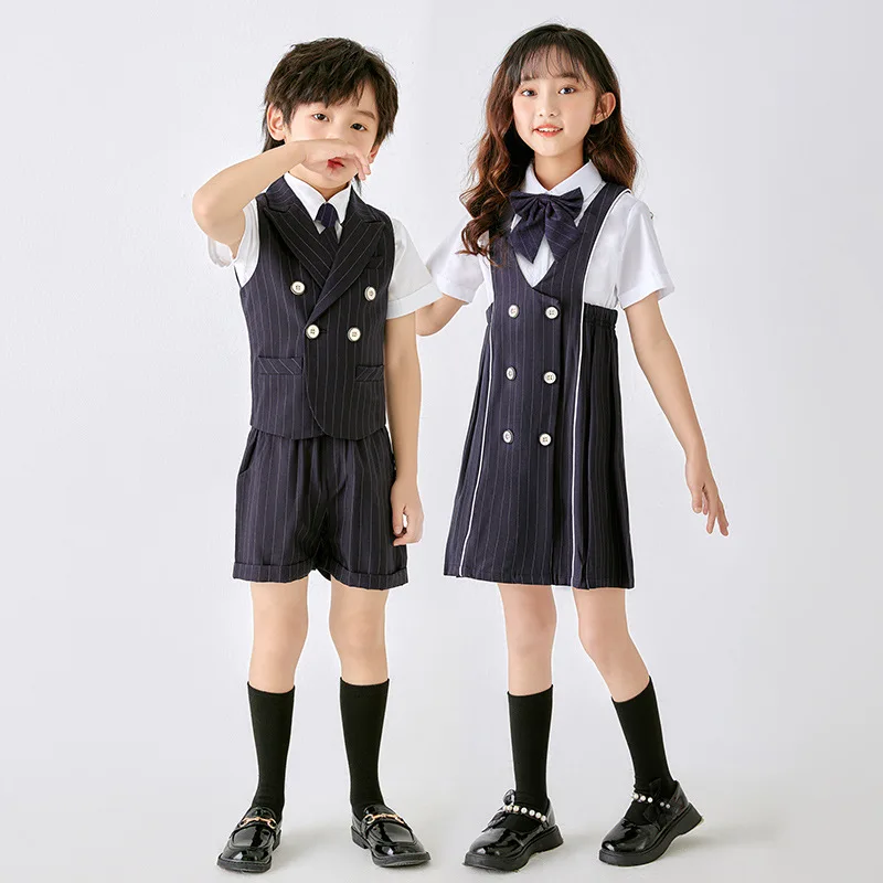 Crianças meninas uniforme escolar colete vestido em torno do pescoço sem mangas plissado tanque vestido estilo jk vestido dias escolares trajes de festa de aniversário