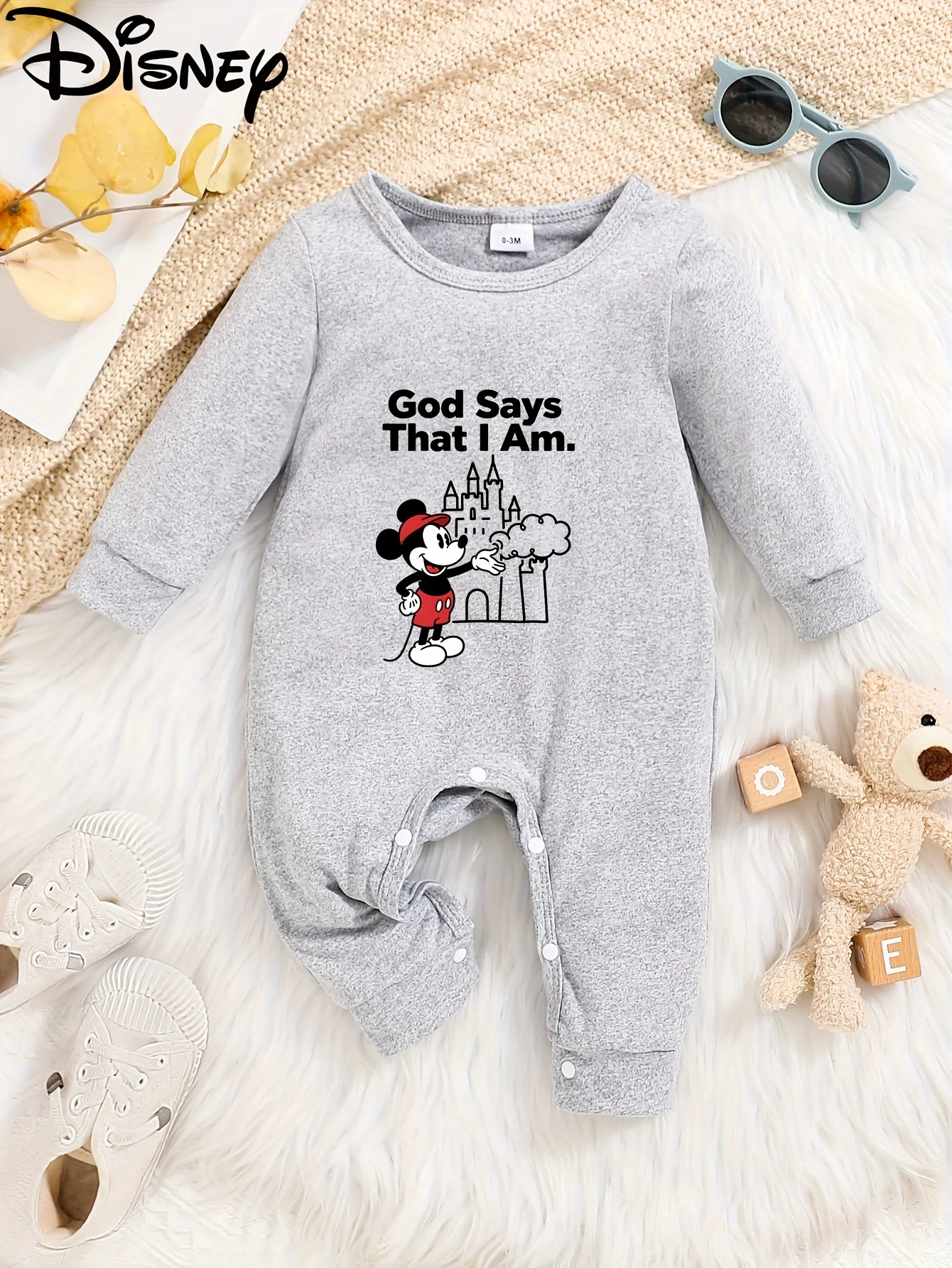 【Autorizado】 Macacão de manga comprida para bebê Disney Minnie Mouse, estampa fofa, gola redonda, macio e confortável, lavável à máquina, adequado para todas as estações, adequado para uso ao ar livre