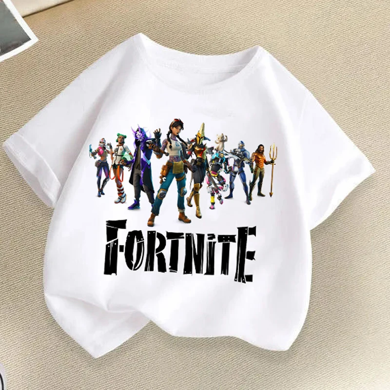 Fortnites crianças camisetas de algodão verão manga curta camiseta branca para menino menina anime casual topos dos desenhos animados impressão roupas da criança