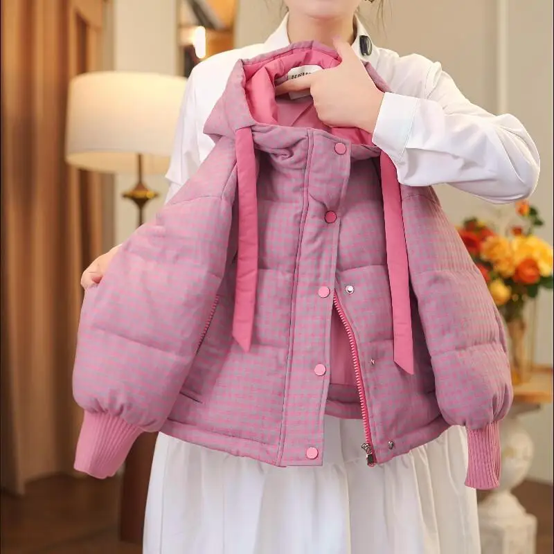 2025 jaqueta acolchoada para meninas outono inverno casaco quente xadrez outerwear à prova de vento confortável topos roupas infantis 4-12 anos de idade