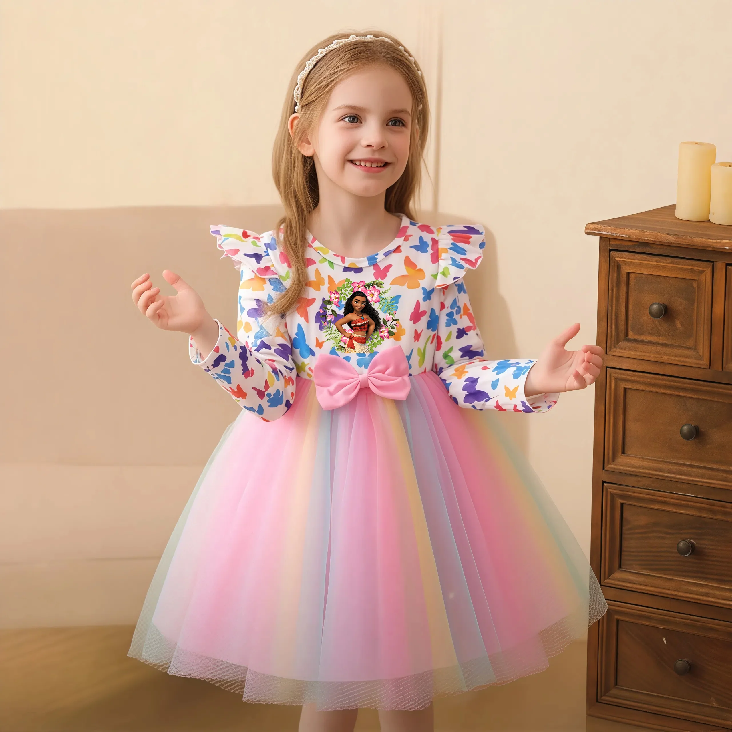 Maiô infantil com babados, manga comprida, zíper, proteção contra queimaduras, estampa de laço fofo, macacão de banho