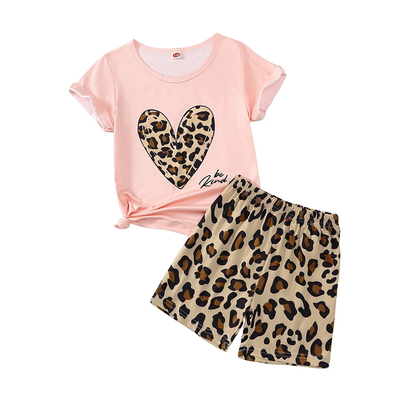 Conjunto de Verão 2 Peças Tops+Shorts Estampado de Leopardo Casual para Crianças Conjunto Simples para Meninas