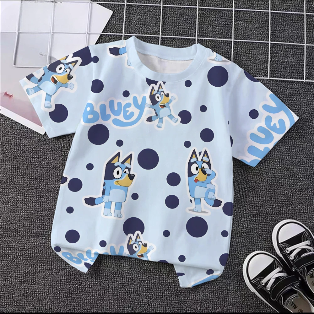 Bluey Kids Cool 3D Tee Verão Leve de Secagem Rápida Manga Curta Cartoon Anime Print Camiseta Respirável para Meninos e Meninas