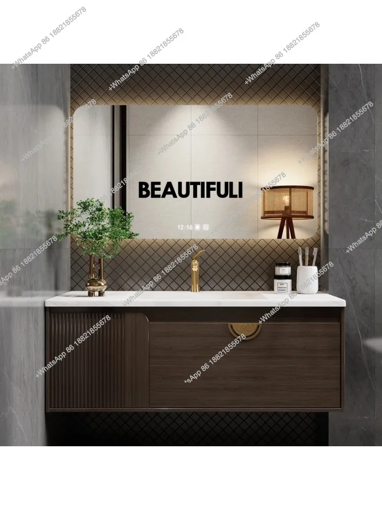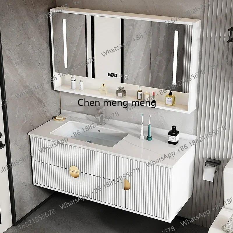 Armários de banheiro modernos, espelho de gaveta de cerâmica de ardósia, lavatório integrado, armário de banheiro, móveis de banheiro